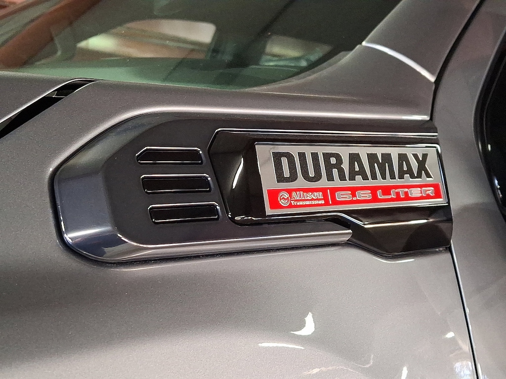 This GMC Sierra 2500HD delivers a Turbocharged Diesel V8 6.6L/ engine powering this Automatic transmission. ENGINE, DURAMAX 6.6L TURBO-DIESEL V8, B20-DIESEL COMPATIBLE (470 hp [350.5 kW] @ 2800 rpm, 975 lb-ft of torque [1322 Nm] @ 1600 rpm) (Includes (K05) engine block heater.), Wireless phone projection for Apple CarPlay and Android Auto, Wireless Charging.