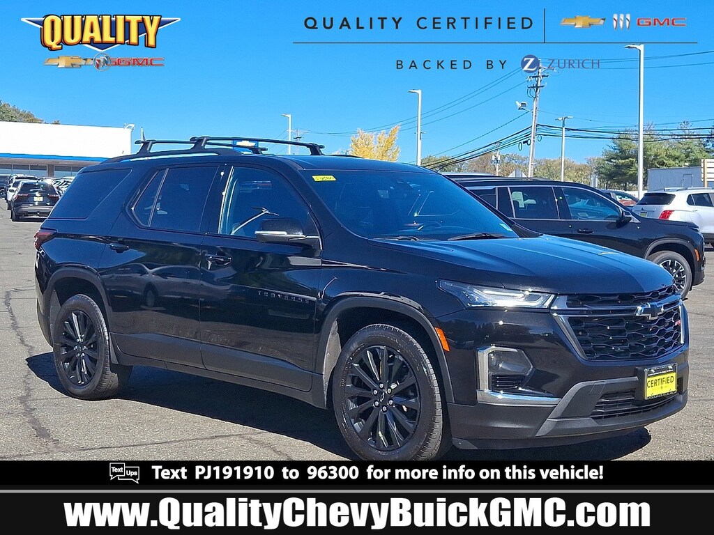 Delivers 25 Highway MPG and 17 City MPG! This Chevrolet Traverse delivers a Gas V6 3.6L/217 engine powering this Automatic transmission. TRANSMISSION, 9-SPEED AUTOMATIC (STD), SUNROOF, DUAL SKYSCAPE 2-PANEL POWER with tilt-sliding front and fixed rear, includes power rear sunscreen, SEATS, FRONT BUCKET (STD).* This Chevrolet Traverse Features the Following Options *LPO, FLOOR LINER PACKAGE includes (RIA) front and second row all-weather floor liner, LPO, (RIB) third row all-weather floor liner, LPO and (CAV) integrated cargo liner, LPO, LICENSE PLATE FRONT MOUNTING PACKAGE (will be forced on orders with ship-to states that require a front license plate) , RS PREFERRED EQUIPMENT GROUP Includes Standard Equipment, NOT EQUIPPED WITH REAR PARK ASSIST, SEE DEALER FOR DETAILS. Does not include later dealer retrofit. (Beginning October 17, 2022, certain vehicles will be forced to include (060) Not Equipped with Rear Park Assist, which removes Rear Park Assist. Does not include later dealer retrofit. See dealer for details or the window label for the features on a specific vehicle.), MOSAIC BLACK METALLIC, LPO, INTEGRATED CARGO LINER, LPO, ALL-WEATHER FLOOR LINER, FIRST AND SECOND ROW, LPO, ALL-WEATHER FLOOR LINER, 3RD ROW, JET BLACK/SPICE RED, PERFORATED LEATHER-APPOINTED SEAT TRIM, ENGINE, 3.6L V6, SIDI, VVT (310 hp [232.0 kW] @ 6800 rpm, 266 lb-ft of torque [361 N-m] @ 2800 rpm) (STD).* Visit Us Today *Treat yourself- stop by Quality Chevrolet Buick GMC of Englewood located at 406 Grand Avenue, Englewood, NJ 07631 to make this car yours today!